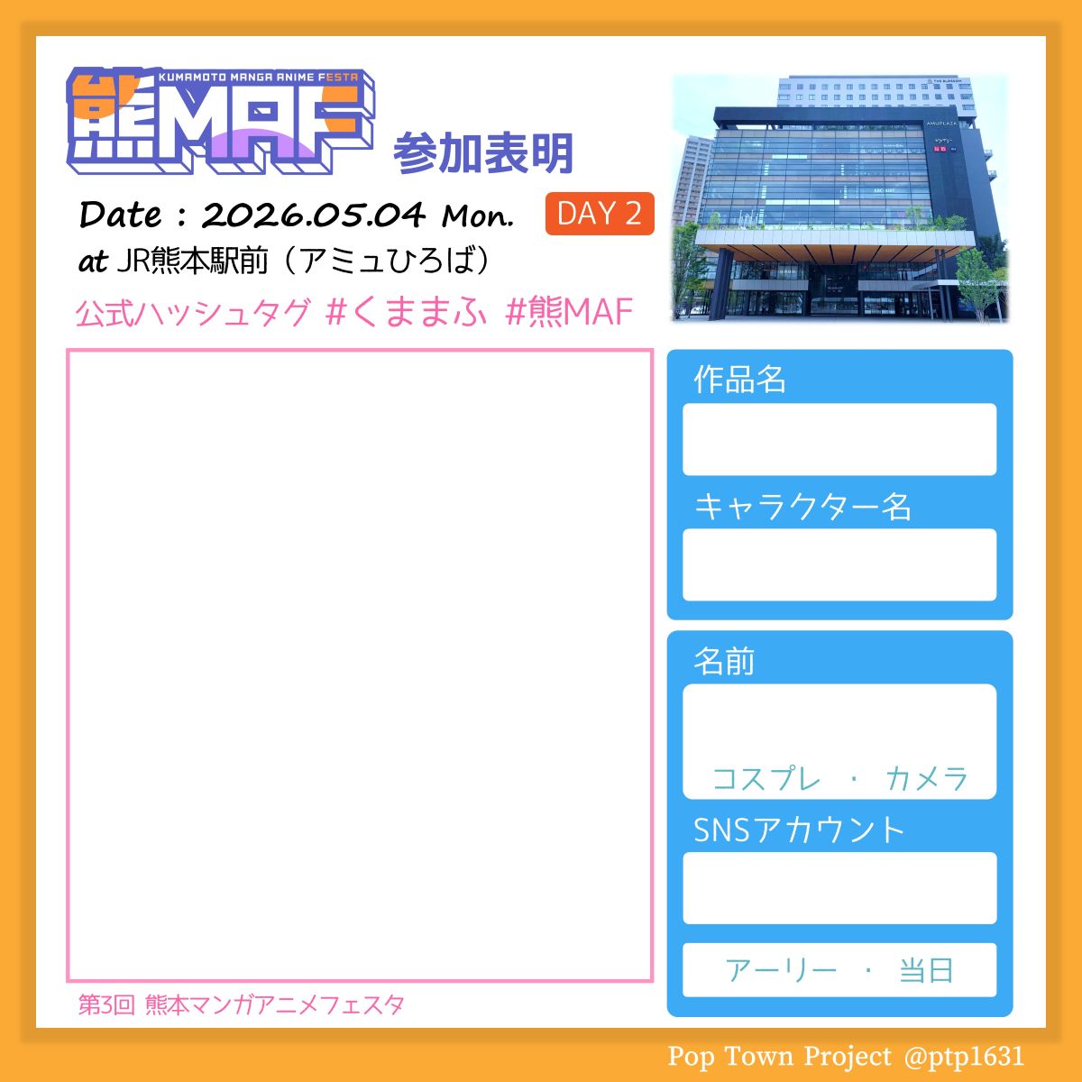 ・イベント以外ではアミュプラザくまもと、アミュひろばで許可なくコスプレすることはご遠慮ください。