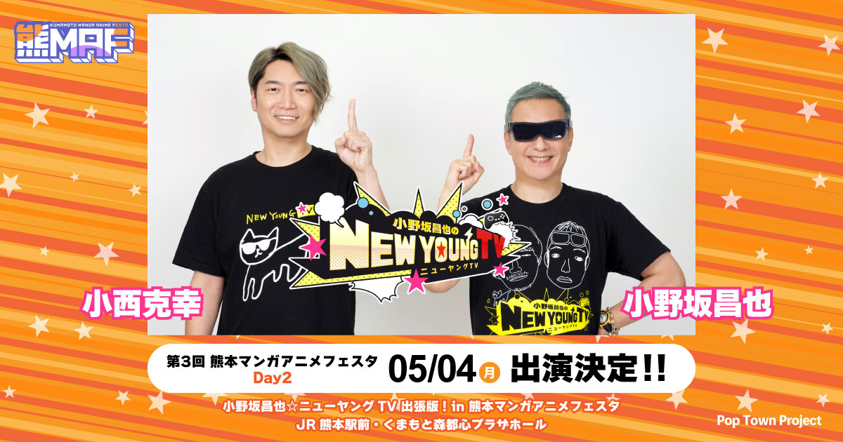 第3回熊本マンガアニメフェスタにYouTubeチャンネル「小野坂昌也☆ニューヤングTV」より、小野坂昌也さんと小西克幸さんの出演が決定しました!